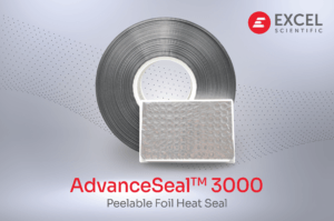Excel Scientific’s newest peelable heat sealing foil, AdvanceSeal™ 3000, is designed for PCR, long-term compound storage, light sensitive assays, and robotics